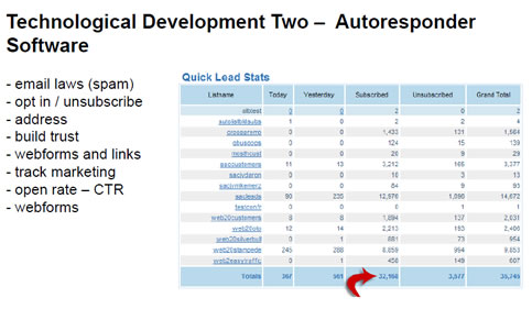 An autoresponder system is simply a computer program that registers the details of people that want to join your list – ie they may sign up to a FREE report from your website, click on a link form a banner advert, or receive an email from you and want more information.